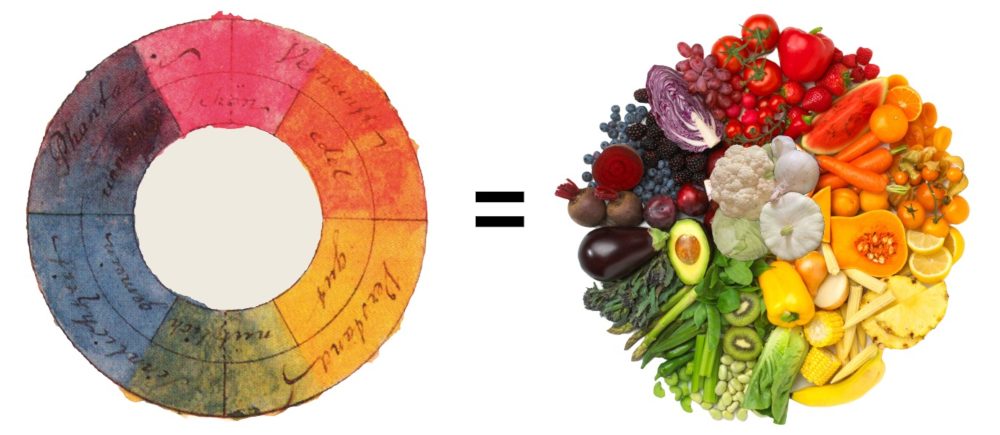 Der Farbkreis nach Goethe zeigt uns, dass alle Farben in pflanzlichen Lebensmitteln vorkommen und tatsächlich genutzt werden können. Verantwortlich dafür sind – wie wir heute wissen – Polyphenole, sogenannte sekundäre Pflanzenstoffe. Diese Polyphenole und die richtigen Ballaststoffe machen es möglich, unser Mikrobiom positiv zu beeinflussen und unsere Gesundheit zu fördern.